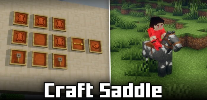 Нововведение под названием Craft Saddle, собственно с этим интересным модом вы сможете открыть для себя интересный вариант возможности крафта седла в собственной игре, вы сможете легко оседлать скакуна. Скачивайте, и открывайте для себя интересное обновление в собственной игре - вам понравиться данный мод.