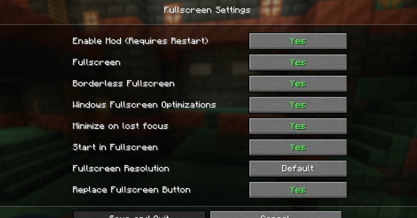 Borderless Fullscreen для Майнкрафт [1.21.5, 1.21.4, 1.21.3]