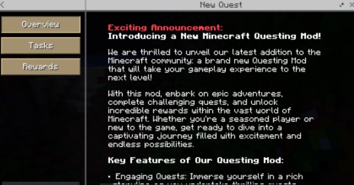 Интересное улучшение Odyssey Quests для вашего игрового клиента, именно с этим интересным модом вы сможете открыть систему квестов с определенными ветками, позволит вам разнообразить игровой процесс, и сделать его гораздо более интересным. Довольно интересное обновление подобного формата, оцените этот интересный мод.