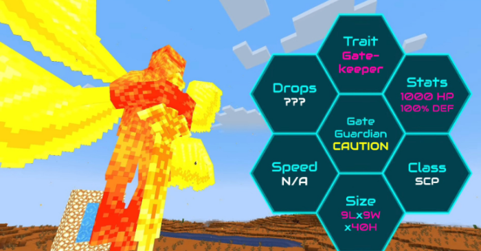 Обновление SCP-001 The Gate Guardian для вашего игрового клиента, именно с данным модом в майнкрафте появиться некий страж, который будет охранять таинственные ворота, они ведут в неизвестное измерение. Сам страж будет очень опасным, и схватка с ним будет очень сложной. Скачивайте, и открывайте интересный мод.